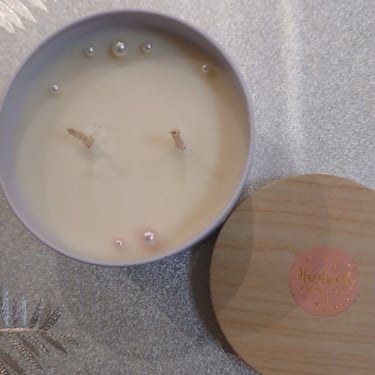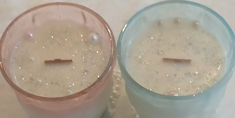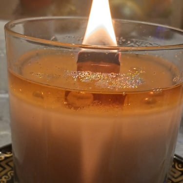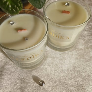 Два вида фитили: Дървен с пукащ ефект или с два памуни фитила за повече аромат .