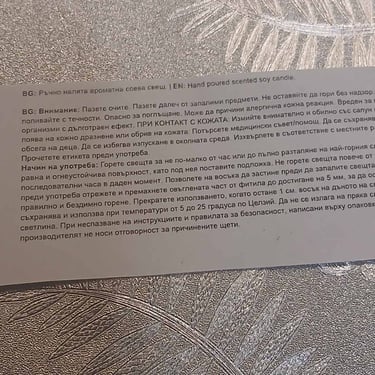 Свещите ни са изработени от 100% соев восък, без парафин и токсини, за по-чисто и безопасно горене.